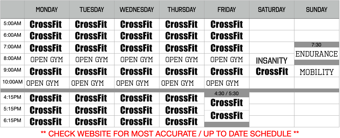 Click to view and enlarge. Class times are subject to change, contact this gym to verify the schedule.
