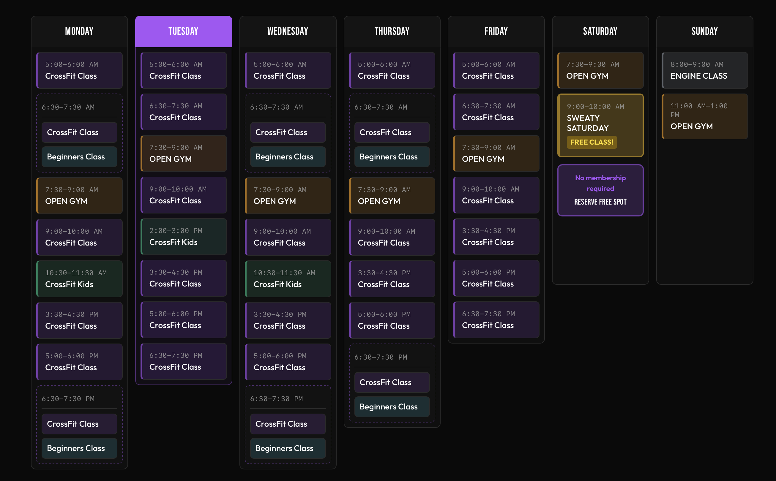 Click to view and enlarge. Class times are subject to change, contact this gym to verify the schedule.