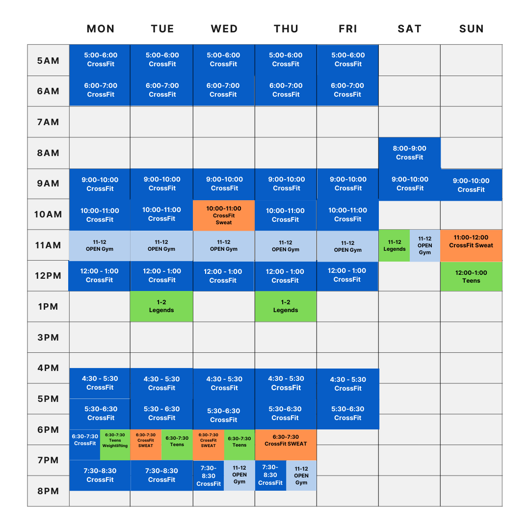 Click to view and enlarge. Class times are subject to change, contact this gym to verify the schedule.