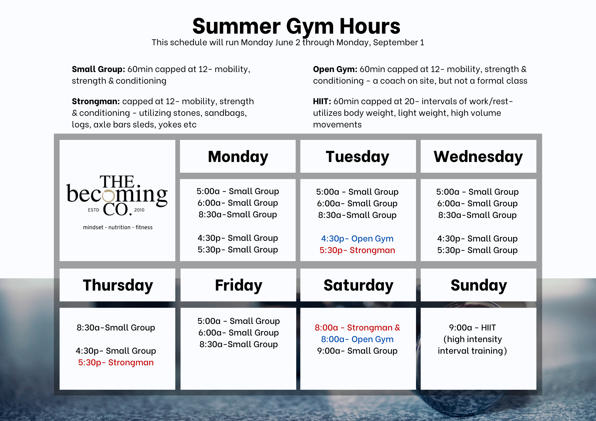 Click to view and enlarge. Class times are subject to change, contact this gym to verify the schedule.
