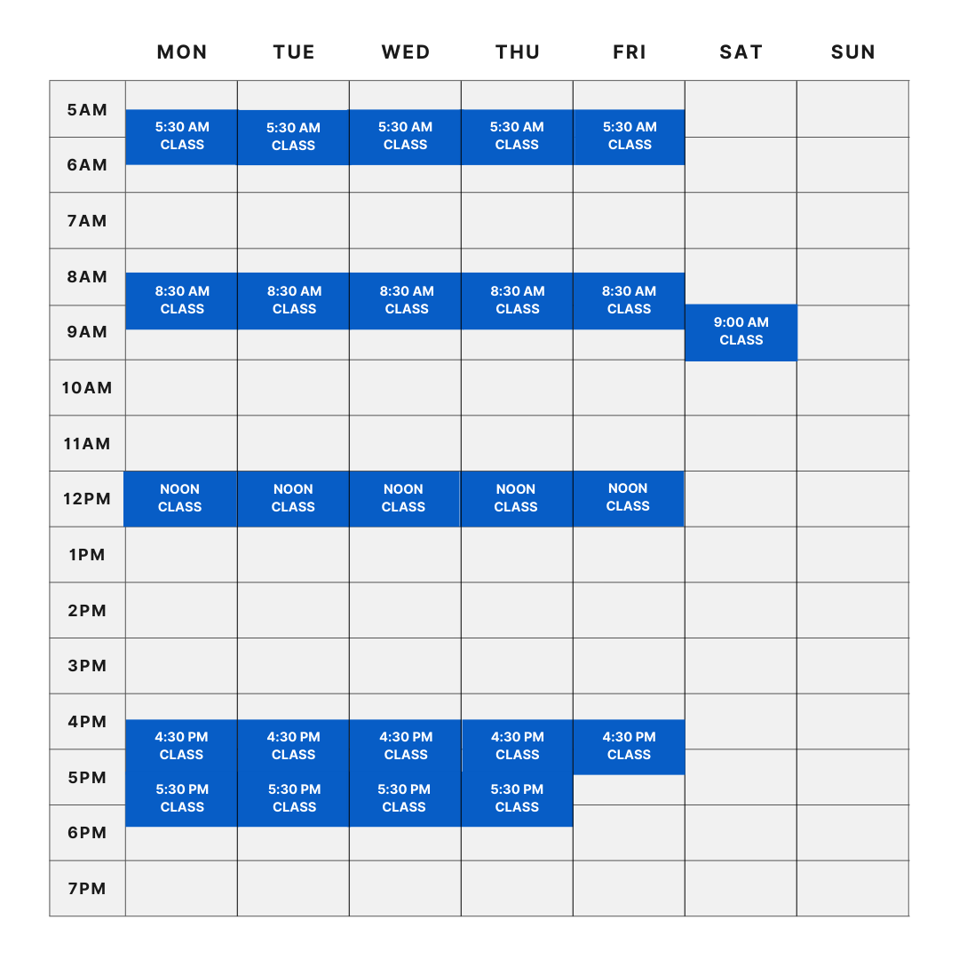 Click to view and enlarge. Class times are subject to change, contact this gym to verify the schedule.