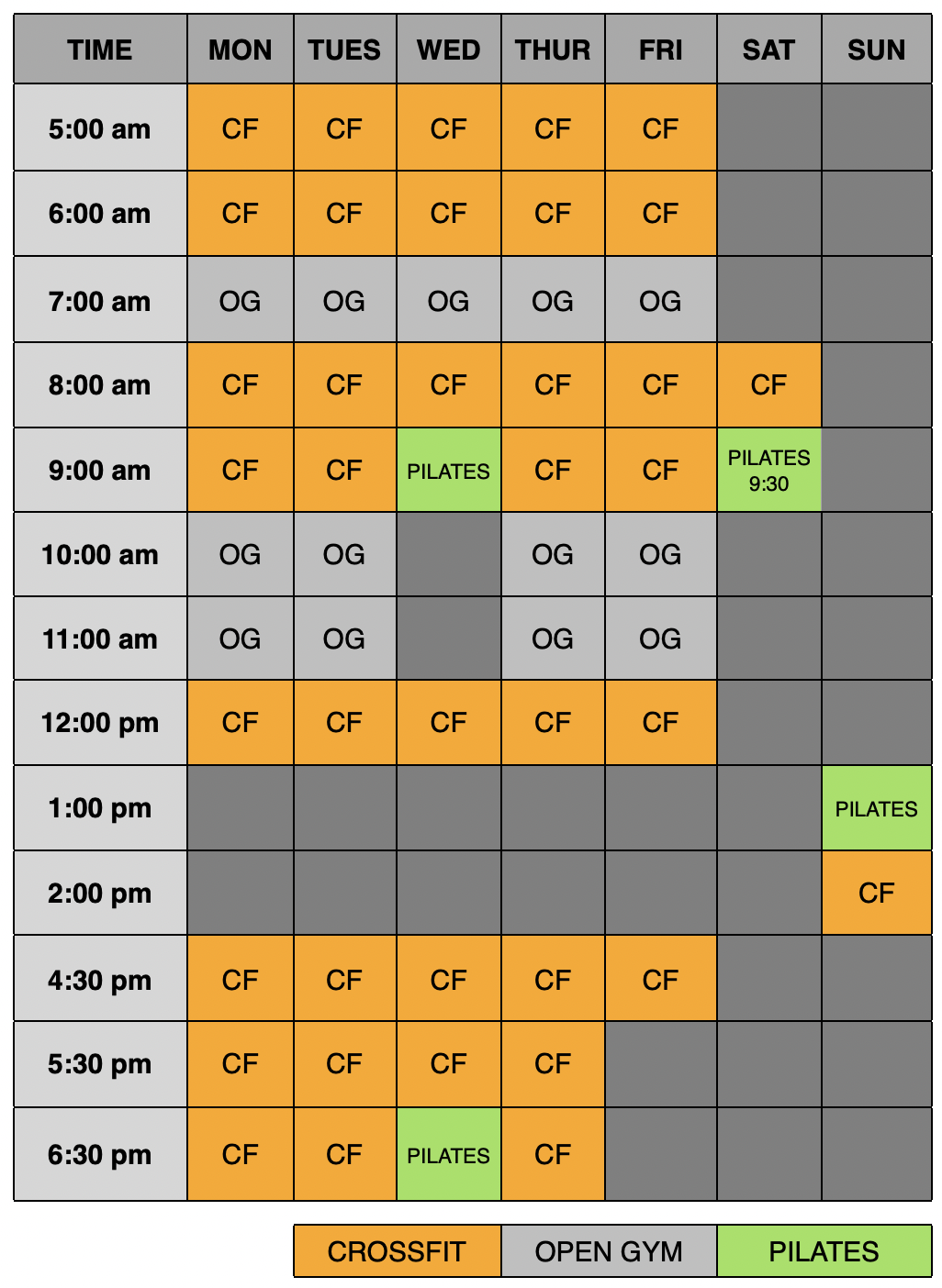Click to view and enlarge. Class times are subject to change, contact this gym to verify the schedule.