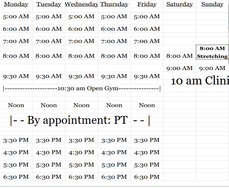 Click to view and enlarge. Class times are subject to change, contact this gym to verify the schedule.