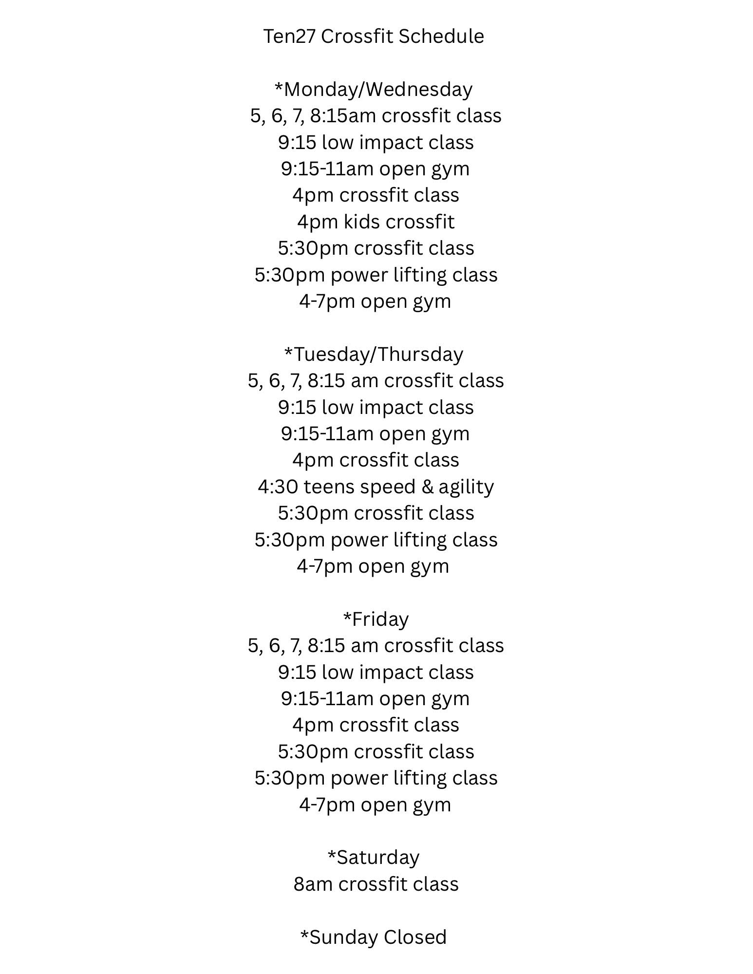 Click to view and enlarge. Class times are subject to change, contact this gym to verify the schedule.