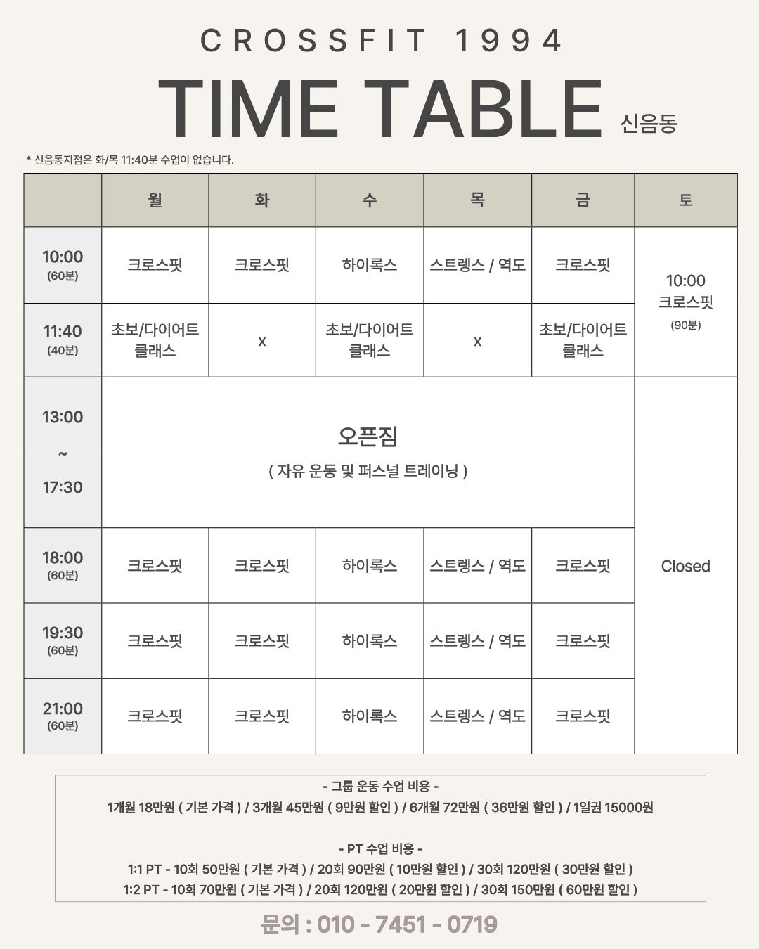 Click to view and enlarge. Class times are subject to change, contact this gym to verify the schedule.