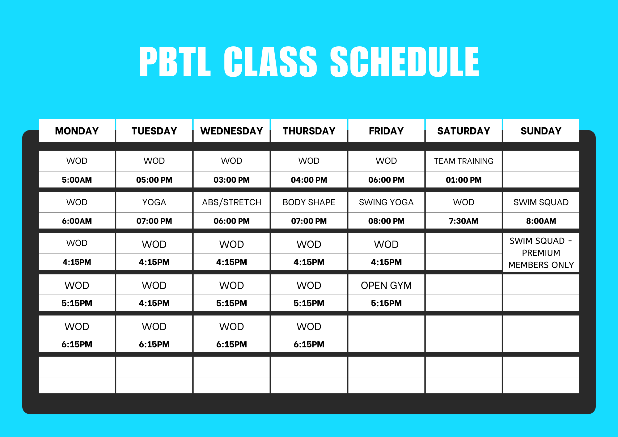 Click to view and enlarge. Class times are subject to change, contact this gym to verify the schedule.