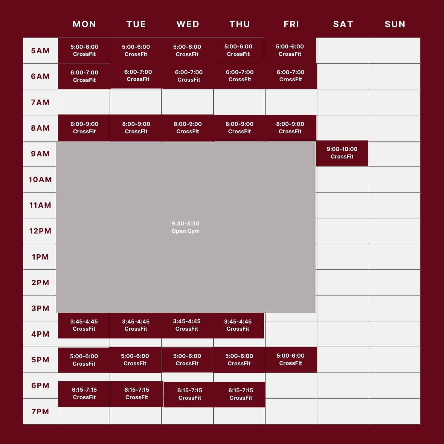 Click to view and enlarge. Class times are subject to change, contact this gym to verify the schedule.