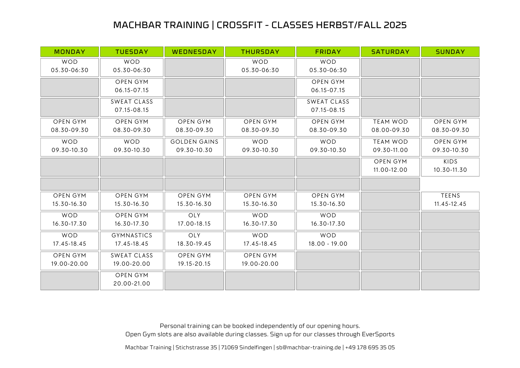 Click to view and enlarge. Class times are subject to change, contact this gym to verify the schedule.