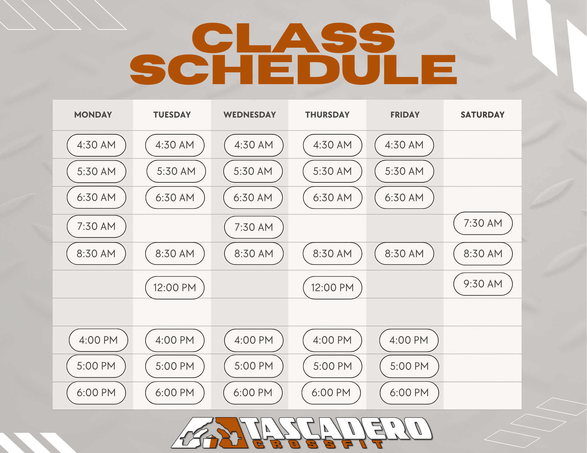Click to view and enlarge. Class times are subject to change, contact this gym to verify the schedule.