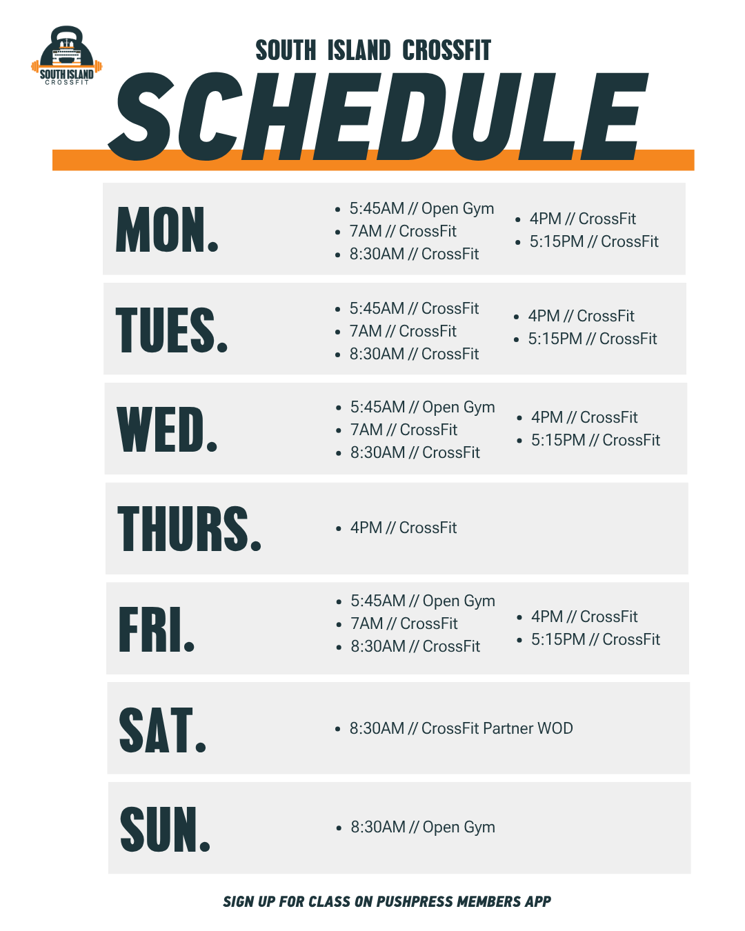 Click to view and enlarge. Class times are subject to change, contact this gym to verify the schedule.
