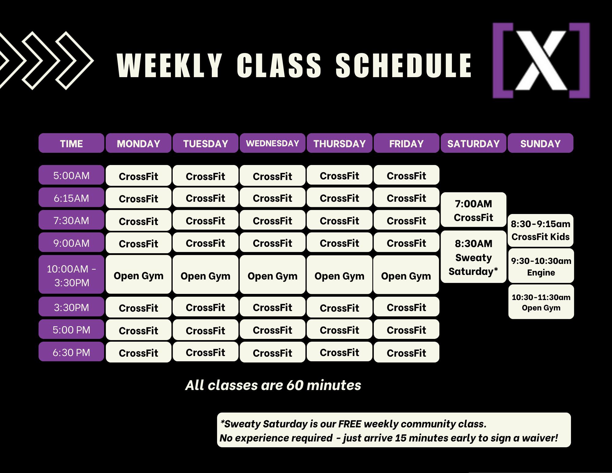 Click to view and enlarge. Class times are subject to change, contact this gym to verify the schedule.