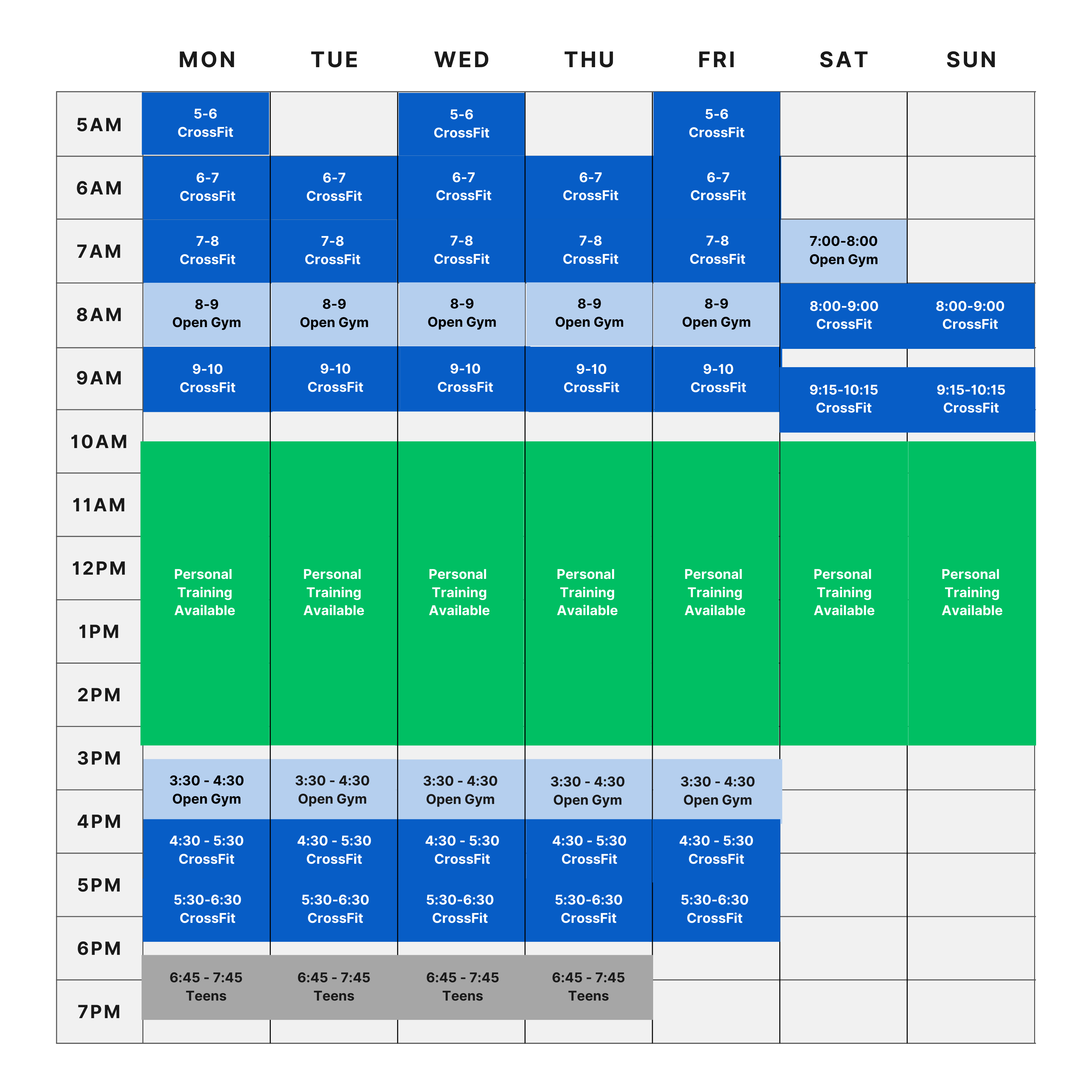 Click to view and enlarge. Class times are subject to change, contact this gym to verify the schedule.