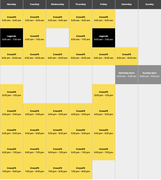 Click to view and enlarge. Class times are subject to change, contact this gym to verify the schedule.