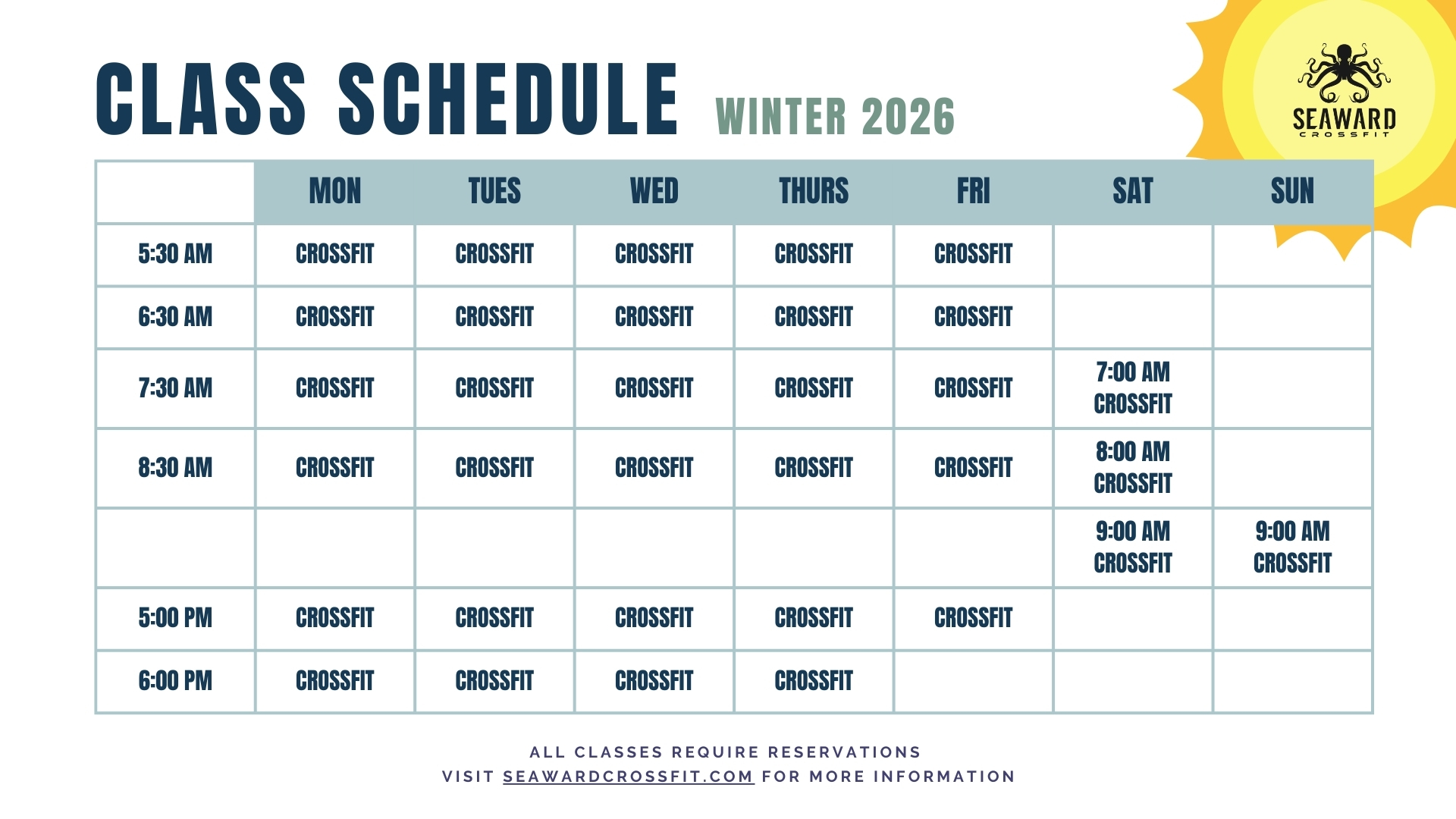 Click to view and enlarge. Class times are subject to change, contact this gym to verify the schedule.